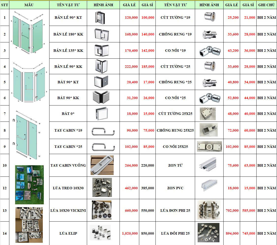 Phòng tắm kính cao cấp, phụ kiện phòng tắm kính giá sỉ